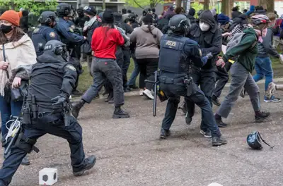 【内戦】米警察「カリフォ大学にライオット手榴弾投入」2000人拘束もまだ拡大中!お祭りは最高潮の盛り上がりに