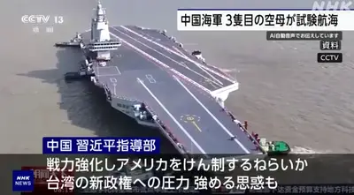 【悲報】ついに中国海軍3隻目の空母が試験航海を開始「2隻の空母より大型で、初めての装備を確認した」海軍力でも世界筆頭も時間の問題か