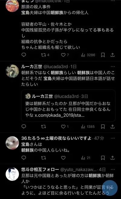 殺害された宝島夫婦、中国系朝鮮族の帰化人か