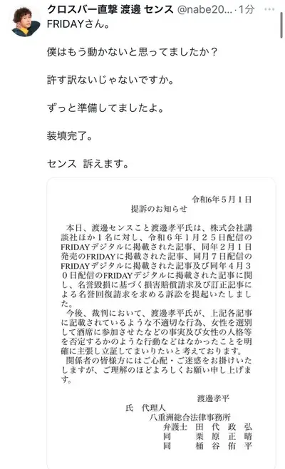 【朗報】松本人志にガチの救世主が出現「全て立証できます」FRIDAYを提訴した模様