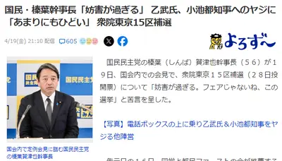 小池知事「つばきの党による乙武氏への選挙妨害醜い。警察も動いたし公選法違反よ。学歴詐称だと私を叩いてるのもこういうオカシイ人ら」