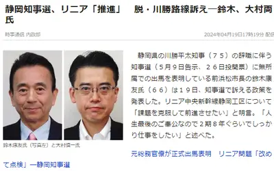 【静岡県知事選】鈴木・大村両氏とも「リニア推進」で静岡県民どうするwww