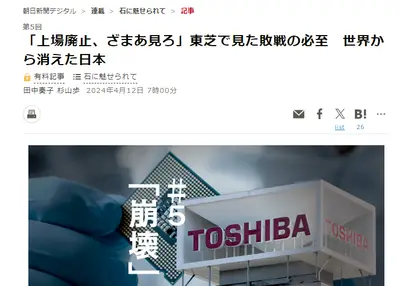 【朝日新聞ウキウキw】「上場廃止、ざまあ見ろ」東芝で見た敗戦の必至 世界から消えた日本