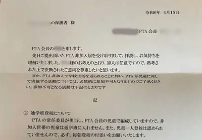 【埼玉無法地帯】PTA会長、非加入世帯に対して生徒に不利益を通達「通学班に入れません」