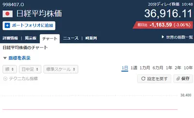 【速報】同時爆破や原油高騰を受け、日経平均大暴落キタ━━━━(゚∀゚)━━━━!!