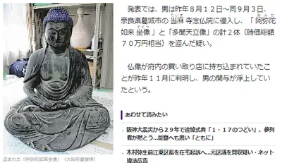 日本のお寺から盗まれた仏像、ネットオークションで発見wwwww