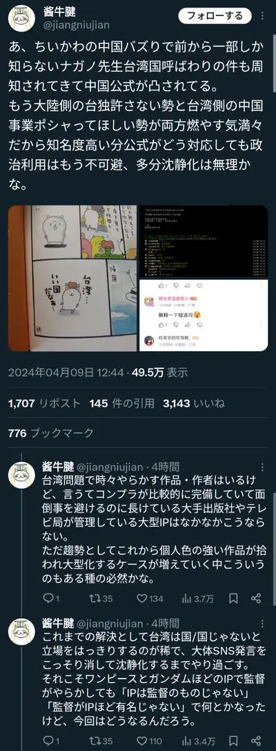 【朗報】ちいかわ、台湾を国として扱う!!※なお中国で大炎上中・・・