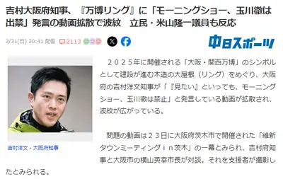 【速報】吉村大阪府知事、大阪・関西万博「モーニングショーと玉川徹は出禁」衝撃発言で波紋も玉川なら良いかの声も