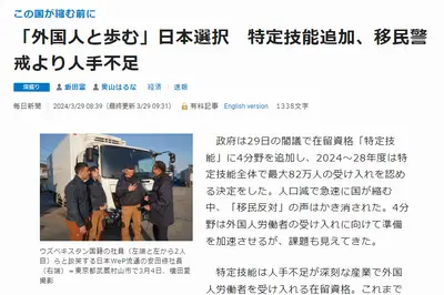 毎日新聞、ウキウキ「移民反対の声はかき消され、外国人と歩むことを日本は選択した」