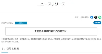 【速報】2月に謎の急閉鎖された小林製薬大阪工場、適正製造規範の認証取得していなかったことが判明!!