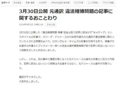 【悲報】NHK、大谷翔平に関する事件でデマ拡散認め謝罪