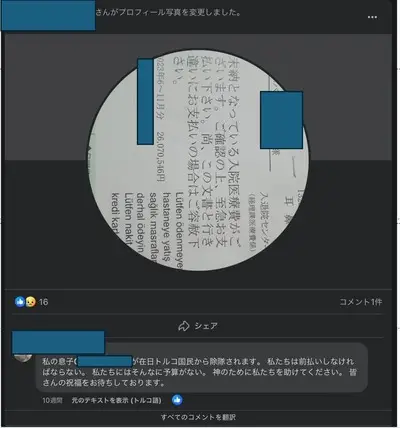 【速報】在日クルド人、日本で入院治療を受け滞納医療費請求26,070,546円の通知届く「神のために皆さんで私達を助けてください」