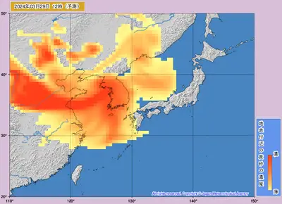 【速報】気象庁「29日・30日、外出している方は大気汚染を吸い込みます」大規模な黄砂が日本を襲う模様、韓国に既に到達