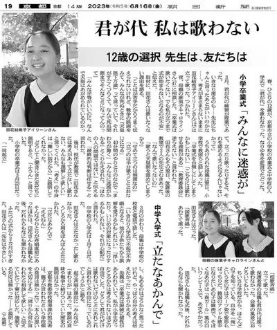 【悲報】君が代強制を訴えた12歳生徒、歌いたくない理由を話す「天皇制を認めてしまうから」