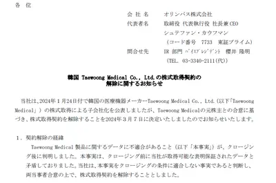 オリンパス、株式全取得で韓国医療機器完全子会社→データ不正が発覚 オリンパス「ふざけるな、株式取得契約を解除する」
