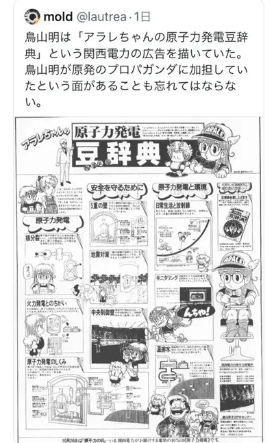 【画像】パヨ「鳥山明さん、原発プロパガンダに加担していたことを忘れてはいけない」5chでバカにされる