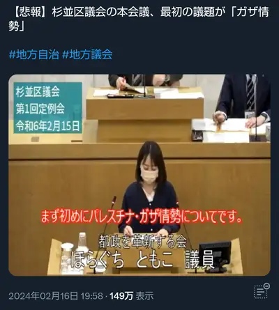 【悲報】杉並区議会の本会議、最初の議題が「ガザ情勢」