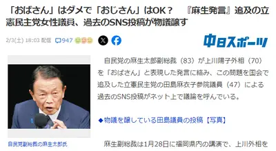 【テレ朝】女性タレントが麻生氏「おばさん」発言に嫌気「本当に言いたいことが伝わらない昭和のおじさんって、こんな感じ」