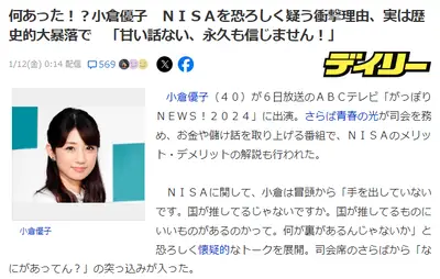【陰謀落ち】小倉優子さん「NISAに手出してません。だって国が推しているじゃないですか…何か裏があるんじゃ」
