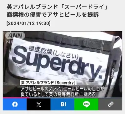 【速報】英アパレルブランド「スーパードライ」商標権の侵害でアサヒビールを提訴