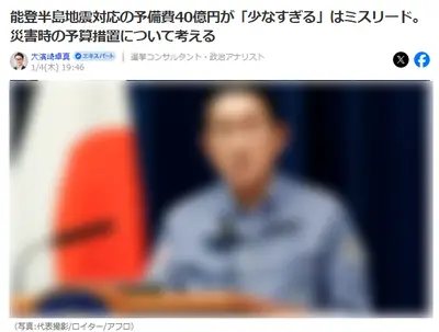 【デマ拡散】野党議員「能登半島地震にたった40億円」岸田首相が反面「発言切り取り乙、プッシュ型支援の額です。予算制限は絶対に考えない」