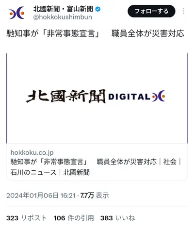 【緊急】石川県・輪島市の避難所で強盗よりも緊急事態が発生「全員警戒、全員警戒」