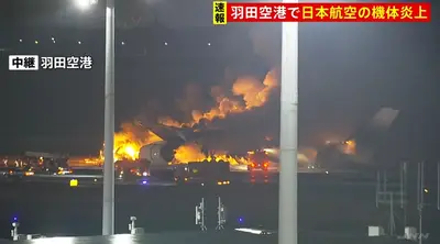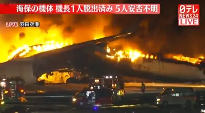 【速報】被災地に物資輸送の海保機、379人乗客の日本航空と衝突炎上「海保機5人安否不明」
