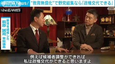前原誠司議員「教育無償化を旗印に野党結集なら政権交代は可能!!」教育無償化の一点で国家運営する模様www