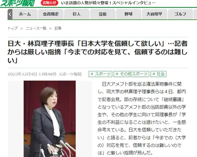【記者会見】日大・林真理子理事長「日大を信頼して欲しい」記者「無理っす」