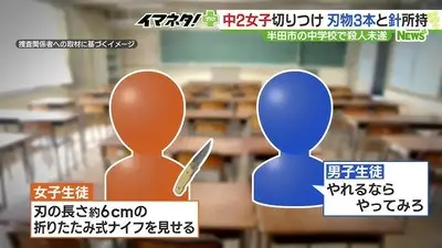 ナイフちらつかせた女子生徒に男子生徒「やれるものならやってみろ」→直後に首を切られる、ナイフ3本 畳針所持
