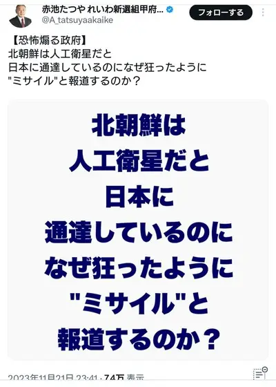 【悲報】れいわ新選組の関係者「北朝鮮は人工衛星だと日本に通達しているのに、なぜ狂ったようにミサイルと報道するのか」