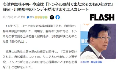 【もはや意味不明】今度は「トンネル掘削で出た水そのものを返せ」静岡・川勝知事のトンデモがますますエスカレート