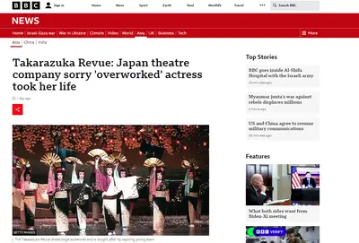 【速報】BBC英国放送協会「日本の伝統的な劇団『宝塚歌劇団』で女優が自殺」キタ━━━━!