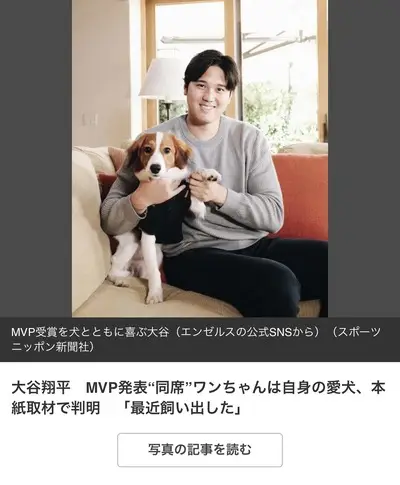 【速報】大谷翔平の隣に居た犬の正体が判明、ただのビーグル犬じゃなかった
