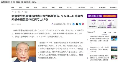 ■速報■ 創価学会名誉会長の池田大作氏が死去、95歳