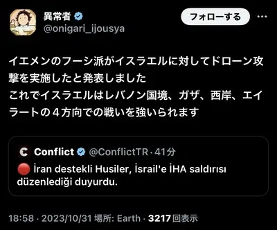 ■速報■ イエメン軍部、正式に宣戦布告「イスラエルに向け攻撃を開始」第二戦線を形成、弾道ミサイルや巡航ミサイルによる集中砲火