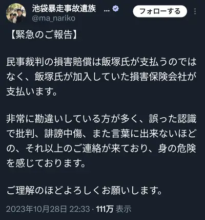 【悲報】池袋暴走事故 被害者遺族に誹謗中傷殺到「老人から億の金を奪うとは何事か」