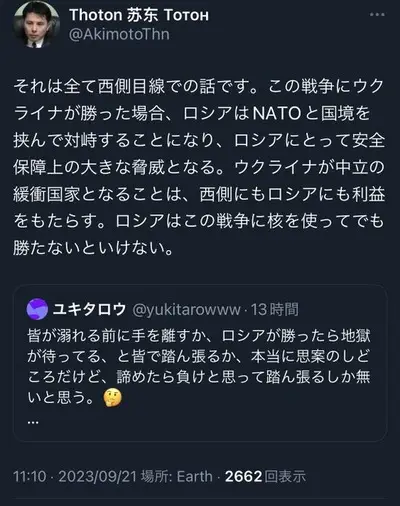 れいわ支持者のニュース翻訳者「ロシアは核を使ってでもこの戦争に勝たないといけない」