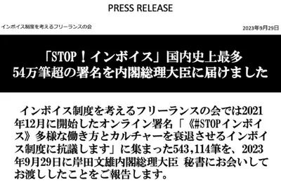 【速報】インボイス反対オンライン署名が岸田総理国会事務所に渡される