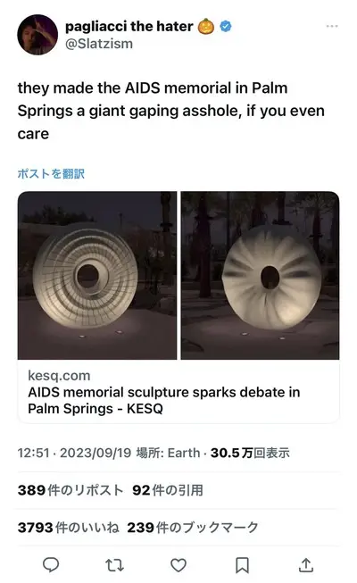 【画像】米国に建立されたエイズ記念碑が肛門に似てるとして住民激怒 デザイン変更へ