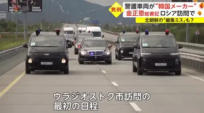 ロシア側、金正恩総書記の警護車両に韓国の現代用意するミス→北朝鮮は護衛走行の様子を編集忘れで放送