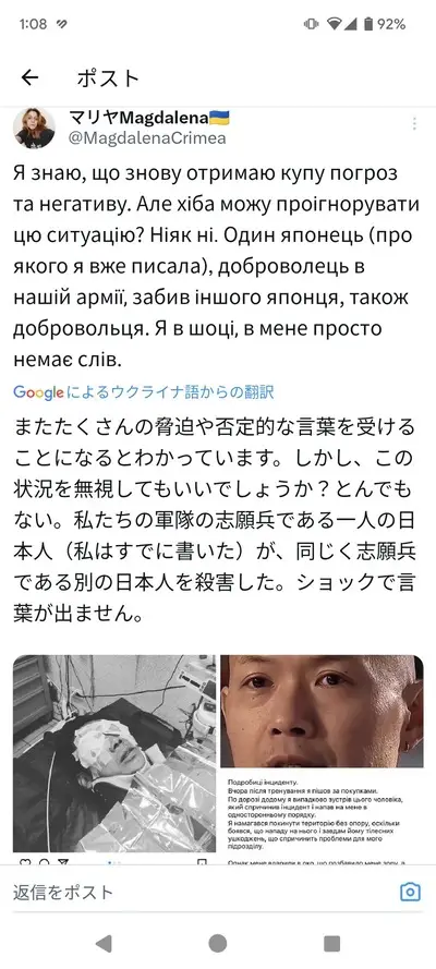 【画像】ウクライナに参加する悪名高い日本人義勇兵、有名な日本人義勇兵を襲い両目失明か