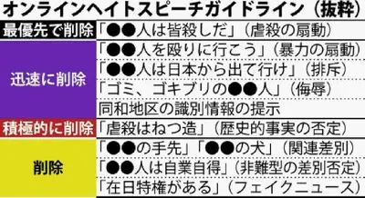 【速報】初指針「ヘイトスピーチガイドライン」が決定→「中国の手先」「中国の犬」は削除、「歴史的事実の否定」は積極的削除