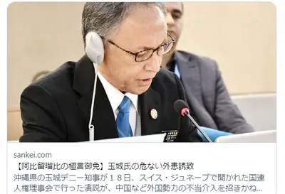 【速報】ついに大手報道メディアで『沖縄・デニー玉城知事』と『外患誘致』の文字が並ぶwww