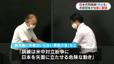 【速報】鹿児島に米軍はいらない県民の会、日米訓練中止求めるよう要請「訓練は、米中対立紛争に日本を矢面に立たせる危険な動き」