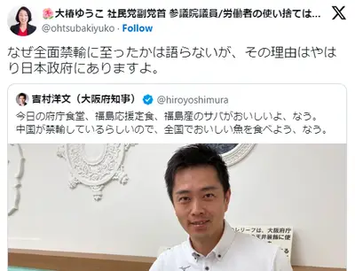 大阪府知事「福島産のサバがおいしい」→社民党「ハッ!中国による日本産海産物全面禁輸の理由はやはり日本政府にある!!!」