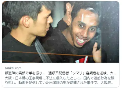 迷惑YouTuber・ソマリ逮捕でNHK報道「弁護士が来るまで話せない」→強制送還「5年(2回目以降は10年)再入国不可」出国命令「1年不可」