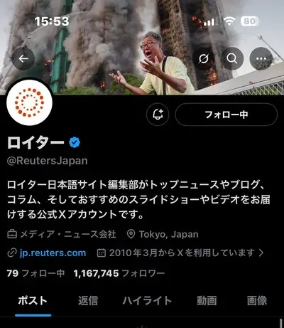【画像】ロイター通信(日本語)アカウント、香港火災で「妻がまだ中に」と泣き叫ぶ男性をXのヘッダーにして大炎上