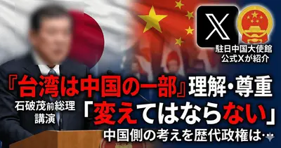 【速報】石破前首相「中国なしで日本は成り立たない。台湾は中国の一部、絶対にこれを変えてはならぬ」