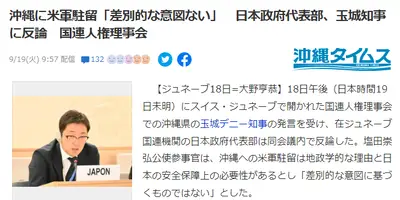 【大恥】国連で内ゲバ見せる 沖縄知事「米軍に平和が脅かされてるの!!世界よ助けて!!」 日本政府代表部「えーあれ頭おかしいです」